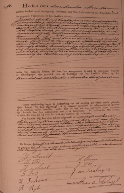 Bron: BS Huwelijk Jacobus Smit en Zwaantje Tos